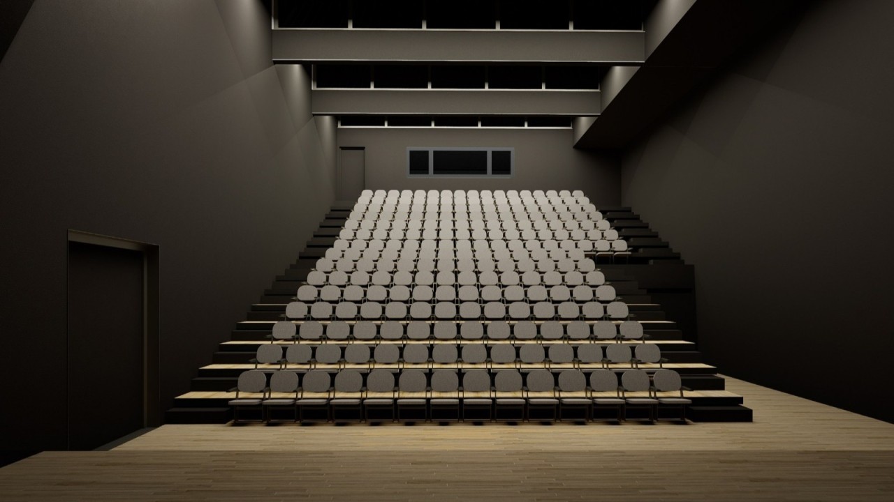 Las principales dependencias del teatro se ubicarán en el cuerpo que replica volumétricamente el original y actual Pabellón 6. Éste contará con una sala de teatro con capacidad para 228 localidades (repartidas entre esta planta baja y entreplanta). El graderío de la planta baja será retráctil y la primera planta de este volumen acogerá una sala de control.