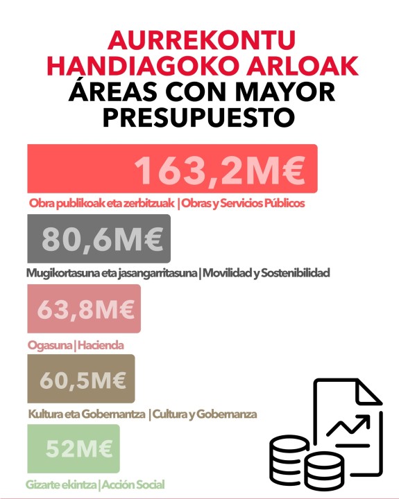 Como premisa importante, el alcalde ha señalado que la elaboración de las cuentas del próximo año se ha realizado en un “contexto de mayor recaudación” de las Haciendas Forales y cumpliendo con las Reglas Fiscales (Estabilidad Presupuestaria; Regla de Gasto y Sostenibilidad Financiera). Con esta base, las claves del nuevo Presupuesto van a priorizar el “mantenimiento de los servicios públicos municipales de calidad para la ciudadanía como son el transporte público, la limpieza, los equipamientos culturales y deportivos, y el cuidado y atención a personas mayores y vulnerables.” Junto a ello, Juan Mari Aburto, ha insistido en el objetivo de “situar en el centro de nuestra actividad diaria a las personas, los barrios y el desarrollo económico”.